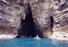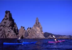 シーカヤック初心者のためのレッスン&ツーリングで、午前にシーカヤックの基礎テクニックと装備の説明をいたします。午後は洞窟やトンネルの多い海岸線へツーリングに出かけます。伊豆の海は通年を通して暖かいのでシュノーケルセットも持って透きとおる海へ潜って遊ぶことも出来ます。水中眼鏡セットは必需品です!!シーカヤックの魅力を十分に理解できることでしょう。イントロ講習はタンデムカヤックでも参加が可能です。