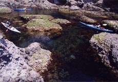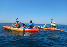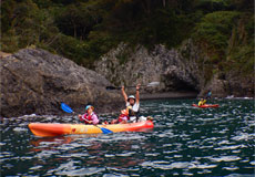 お子様がご一緒でのシーカヤック初心者のためのレッスン&ツーリング。スタート前に簡単な基礎テクニックと装備の説明後、おやつやお弁当をカヤックに積み込んでスタート!この周辺はカヤックで入ることのできる洞窟やトンネルが多く、夏場はカヤックの上からたくさんのカラフルな熱帯魚を見ることができます。夏場は箱メガネやシュノーケルセットをお忘れなく!透きとおる海へ潜って遊ぶことも出来ます。カヤックは一人乗り、二人乗り、3人乗り、お子様の年齢や身長、体重によってカヤックの選択ができますのでご相談ください。