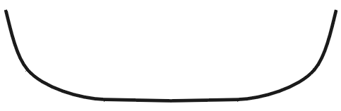 いろいろな種類はありますが、基本的な横断面は2つに分けられます。丸みを帯びたソフトチャインと、とても角張ったハードチャインです。簡単に言えば、その形の違いはカヤックの乗り心地に影響します。ハードチャインはソフトチャインに比べて安定感をもたらしますが、ソフトチャインの丸みは接水面積が少ない分摩擦を減らす事ができます。ソフトチャインは、22-23インチ(55.8-58.4cm)以上の幅広のカヤックに最も効果的であると考えられています。しかし、このソフトチャインを細身のパフォーマンスカヤックに採用することにより、技術的に優れたパドラーであれば安定性を欠いてもスピードを出す事ができるでしょう。22インチ(55.8cm)以下のツーリングモデルには、ハードチャインのハルを採用する事で安定性を高めてツーリングカヤックとしての可能性を広げます。